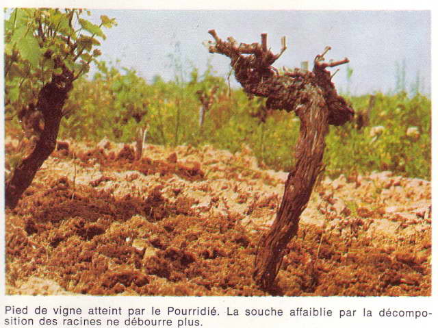 Les hivers pluvieux suivis d'étés chauds sont favorables à l'Esca qui atteint surtout les Vignes âgées et blessées par la taille. Le Pourridié apparaît sur sol humide, imperméable et dans les bas-fonds. Les Vignes plantées sur anciennes friches et surtout sur l'emplacement d'arbres dont les racines n'ont pas été soigneusement enlevées avant la plantation de la vigne sont plus sensibles à cette maladie. L'abus d'alcool est dangereux pour la santé, sachez apprécier avec modération (loi Evin) |
